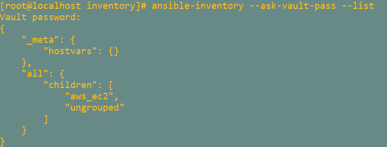 저 파일을 사용하려면 --ask-vault-pass 옵션을 넣고, 패스워드를 입력해야 한다.
