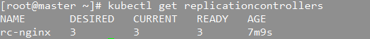 컨트롤러 생성 후 확인 (kubectl get replicationcontroller) rc로 줄여서 확인해도 된다.